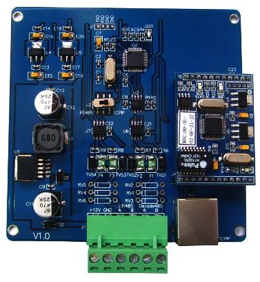 原理:在每一单元楼对讲主机与电梯主控制器间通过RS485接上该对讲联动控制器,需要采集对讲厂家对讲主机的RS485通讯协议,每个单元楼可独立工作。