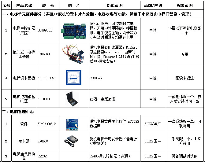 三、易蓝斯特Elanst电梯刷卡系统设备说明