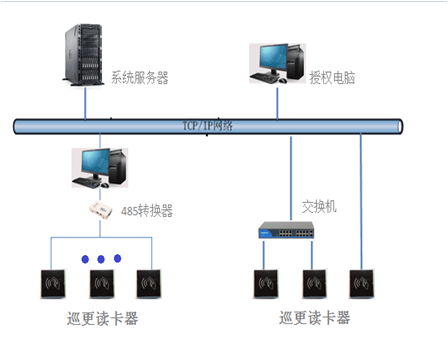 工作原理:由于每个Tcp/Ip巡更读卡器连接在网络交互机上都有不同的IP地址,所以我们用读卡头与巡查点一一对应,读卡头预埋设在巡查点处的非金属物内,巡更卡发给巡查人员。读卡器有读取、传送和处理信息的能力。使用时巡查人员的巡更卡号和读卡时间实时传送到电脑,再通过巡更软件进行各种处理。