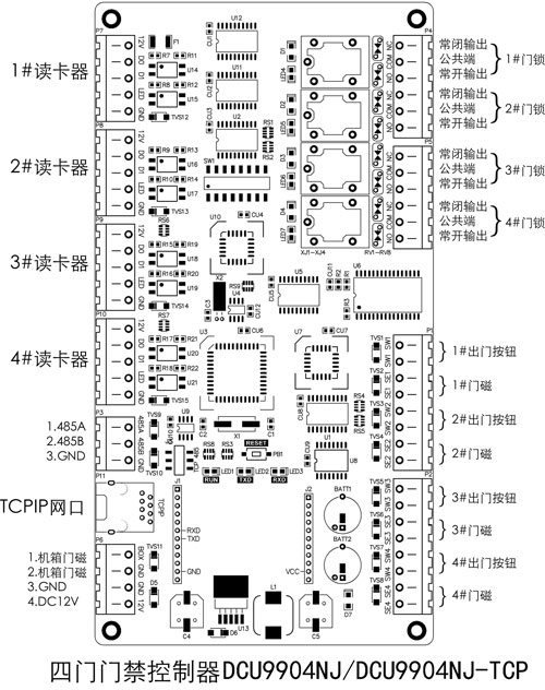 N系列门禁控制器的扩展,功能相同,采用接线端子方式接线。