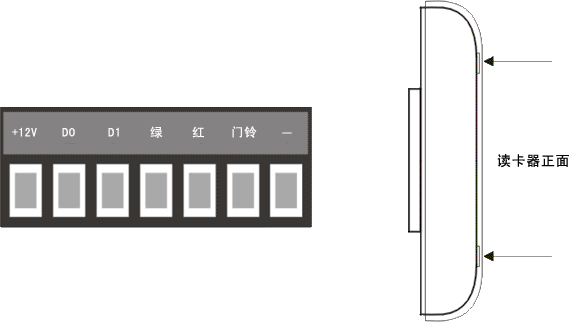 预先在墙面上安装标准的86电气底盒。打开读卡器前面罩(两侧有两小孔,用螺丝刀分别撬开两侧即可 ),用螺丝将读卡器底座固定到电气底盒上。然后按定义要求将读卡器数据线紧固到相应的接线端子上,并插装到读卡器面板上的插座上。确认无误后将读卡器面板扣装到底座上即可。