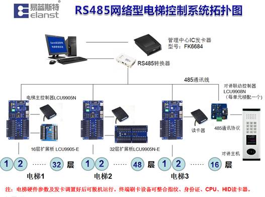 2、Elanst电梯刷卡按通讯方式分类:RS458联网型电梯控制系统、TCP/IP联网型电梯控制系统、脱机IC免布线式电梯管理系统。