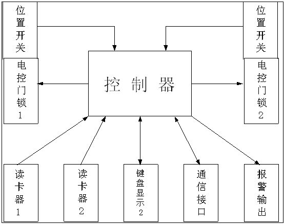 注:双刷识别时采用二个门采用二台控制器来实现互锁功能,我司双门互锁识别端可兼容的设备有:加密卡、人脸识别、指纹识别、虹膜识别。